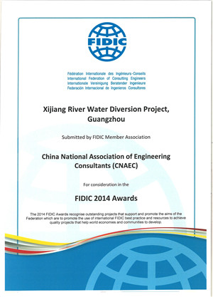 《西江引水項目》獲2014年度FIDIC工程項目提名獎