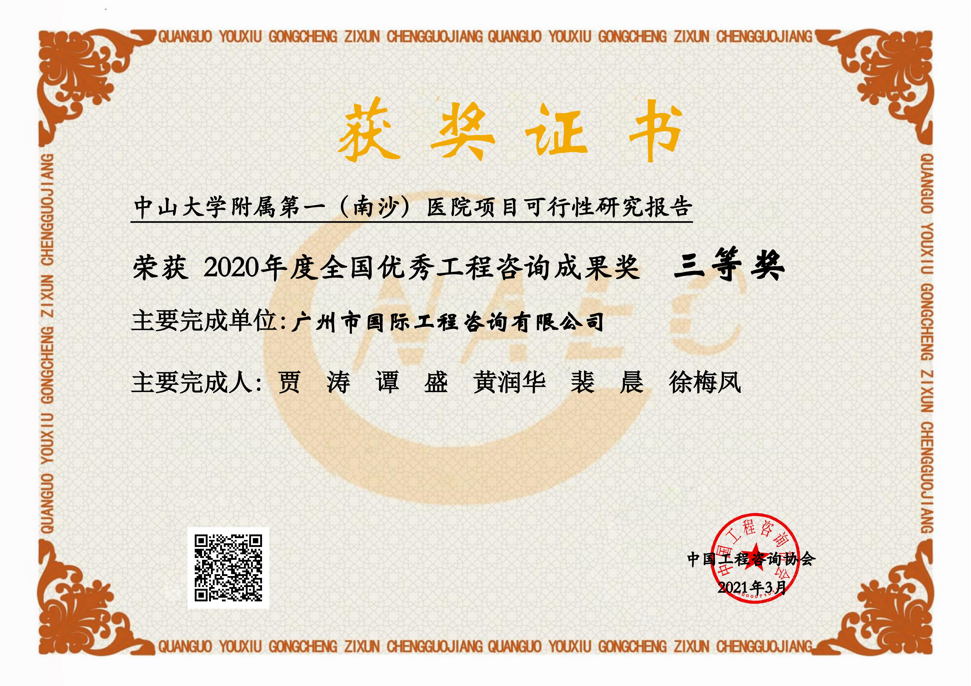 2020年度全國優(yōu)秀工程咨詢成果獎三等獎(中山大學附屬第一(南...