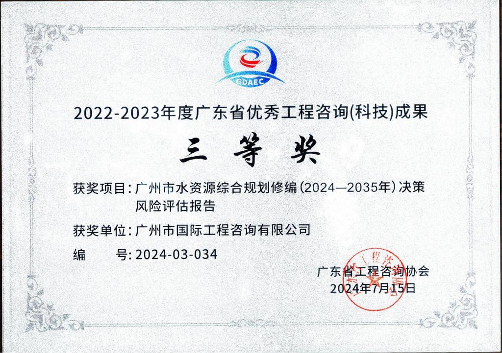 2022-2023年度廣東省優(yōu)秀工程咨詢(科技)成果三等獎(廣州市水...
