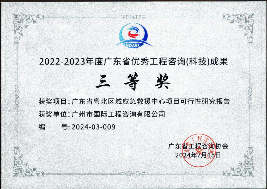 2022-2023年度廣東省優(yōu)秀工程咨詢(科技)成果三等獎(廣東省粵...