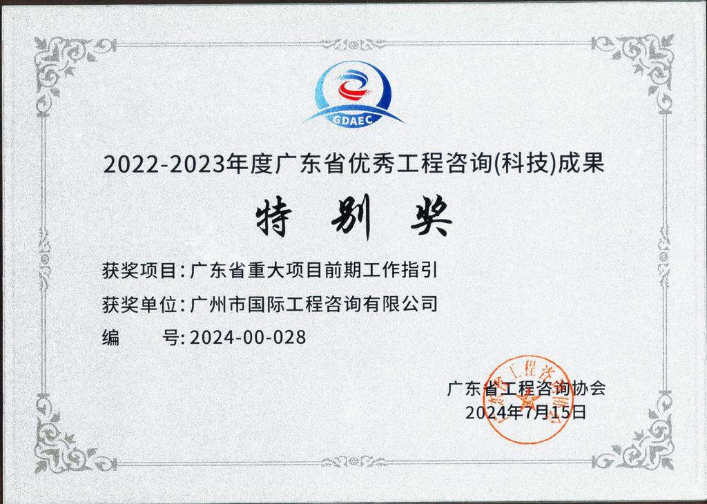 2022-2023年度廣東省優(yōu)秀工程咨詢(科技)成果特別獎(廣東省重...