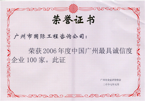 2006年度中國(guó)廣州最具誠(chéng)信度100家
