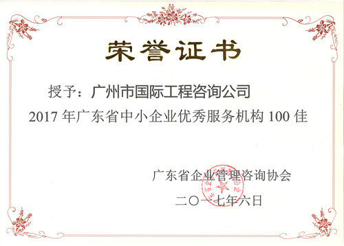 2017年廣東省中小企業(yè)優(yōu)秀服務(wù)機(jī)構(gòu)100佳