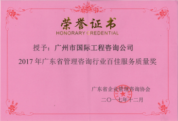 2017年廣東省管理咨詢行業(yè)百佳服務(wù)質(zhì)量獎(jiǎng)