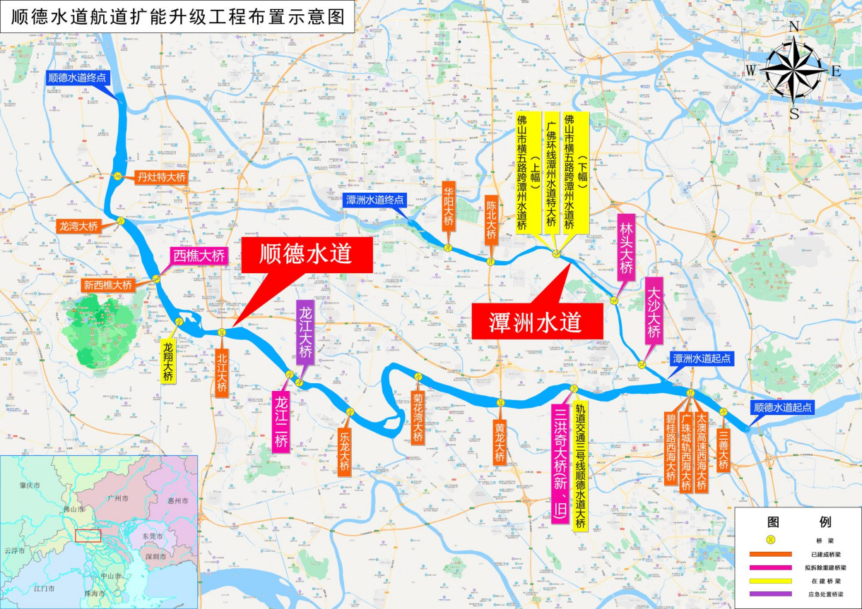 3、項(xiàng)目基本情況:本工程順德水道擴(kuò)能升級(jí)工程整治河段從火燒頭至紫洞口全長(zhǎng)50km,按內(nèi)河Ⅱ級(jí)航道、通航 2000 噸級(jí)船舶要求進(jìn)行建設(shè)。主要建設(shè)內(nèi)容包括水道疏浚淺段0.30km;清礁工程2處;護(hù)岸工程3.2km;三洪奇大橋、龍江大橋(與龍江二橋合并建設(shè))、龍江二橋以及西樵大橋(舊橋)拆除重建,其余未改建橋梁方案中均采用相應(yīng)防撞設(shè)施進(jìn)行防護(hù);建設(shè)航標(biāo)及標(biāo)志標(biāo)牌工程及其他工程。