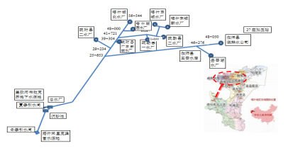 圖3:項(xiàng)目管線和水廠分布示意圖