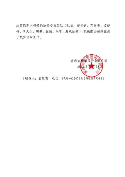 “貴司高度重視,按照區(qū)投資項(xiàng)目審核中心的總體部署,在橫琴駐場(chǎng)開展評(píng)審工作,參與審核人員加班加點(diǎn),短期內(nèi)出具了概算審核報(bào)告書,為預(yù)算編審及招標(biāo)工作的順利完成提供了可靠保障……”近日,廣州市國(guó)際工程咨詢公司收到珠海大橫琴股份有限公司發(fā)來的一封感謝信,信中對(duì)我司尤其是我司的造價(jià)專業(yè)團(tuán)隊(duì)表示了衷心的感謝。