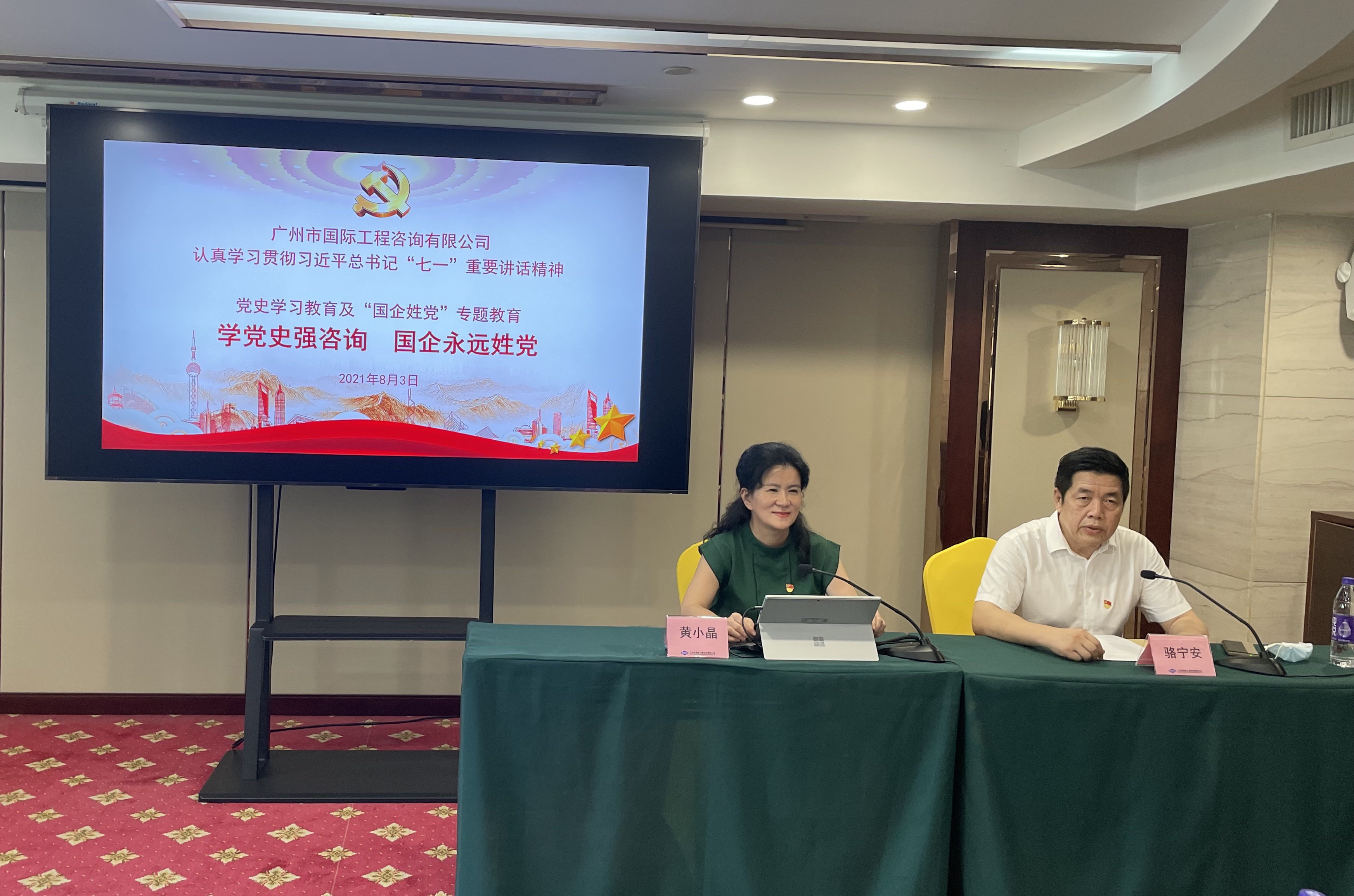 根據(jù)公司黨委黨史學(xué)習(xí)教育及開展“國(guó)企姓黨”專題教育工作安排,結(jié)合認(rèn)真學(xué)習(xí)貫徹習(xí)近平總書記在慶祝中國(guó)共產(chǎn)黨成立100周年大會(huì)上重要講話精神工作要求,廣州市國(guó)際工程咨詢有限公司黨委迅速掀起學(xué)習(xí)宣傳貫徹?zé)岢保?/span>推動(dòng)學(xué)習(xí)培訓(xùn)全覆蓋,于8月3日邀請(qǐng)了市委黨史學(xué)習(xí)教育領(lǐng)導(dǎo)小組成員、市委講師團(tuán)成員、中共廣州市委黨史文獻(xiàn)研究室(市人民政府地方志辦公室)黃小晶主任作《學(xué)黨史強(qiáng)咨詢 國(guó)企永遠(yuǎn)姓黨》專題宣講。