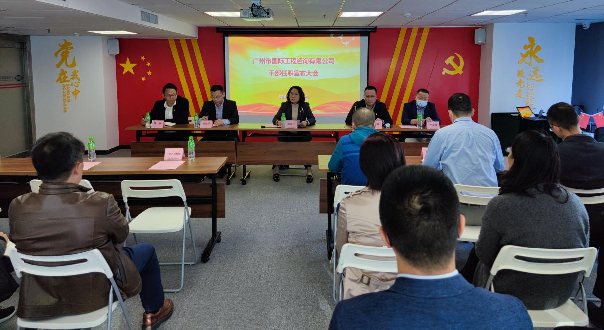 12月8日下午,廣州產(chǎn)投集團在廣州市國際工程咨詢有限公司第四會議室召開了干部任職宣布大會。會議由集團黨委副書記蔣麗紅主持,集團黨委辦公室主任、行政管理部總經(jīng)理王勝華、公司領(lǐng)導(dǎo)、中層干部參加了會議。